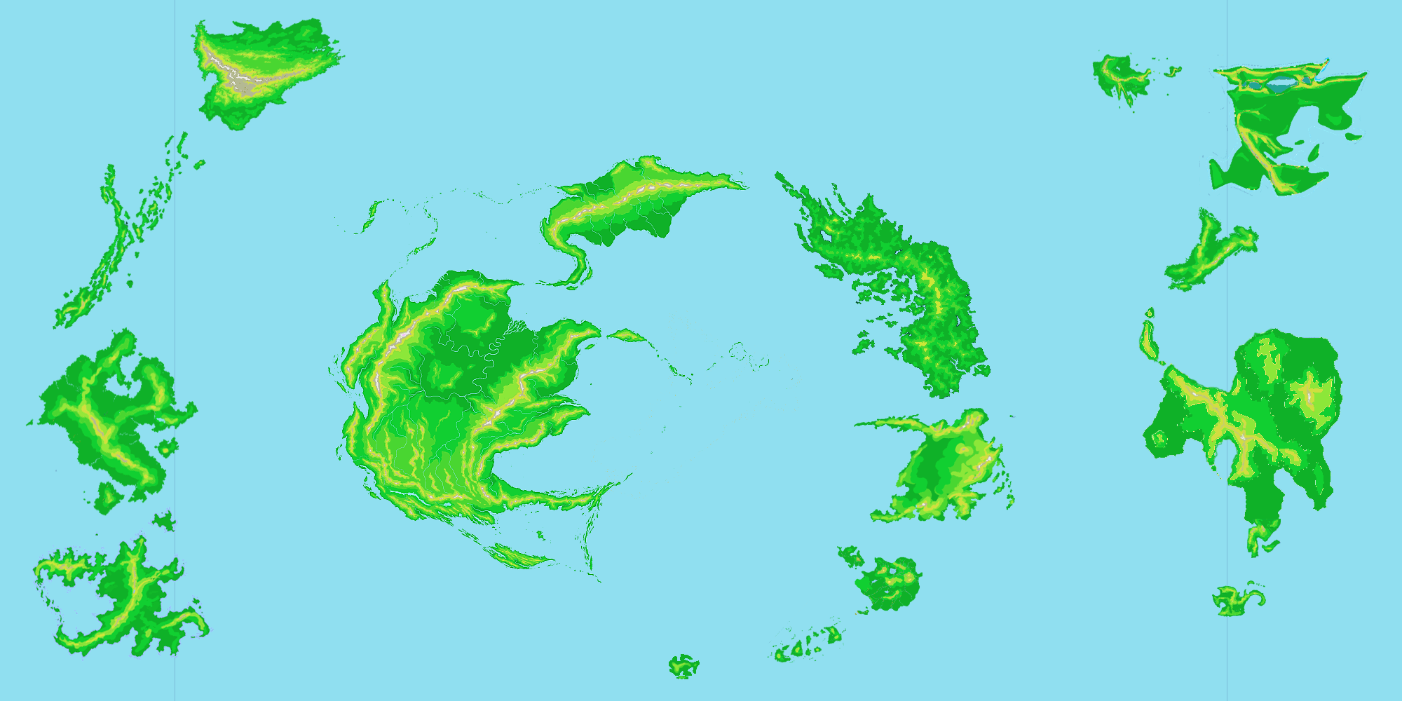 Roughly speaking, Lyra's continent will be Eurasia-sized; Torco's and Ars Lande's will be Africa-sized; the next bloc in bold will be Australia-sized, and the rest will be smaller islands.